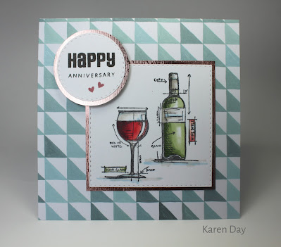 It's our 28th Anniversary today! I made a card for my husband, using some One Canoe Two paper, and some Tim Holtz mini Blueprint images. I really love how the rose gold metallic paper looks with the muddy blue of the background papers.
