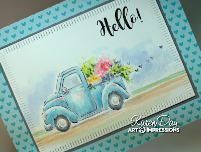 I am using the 5576 - Little Trucks Set from the Art Impressions Watercolour Journal line today: